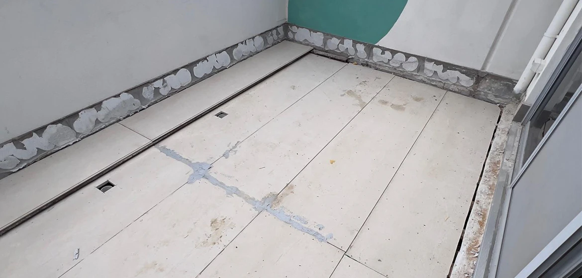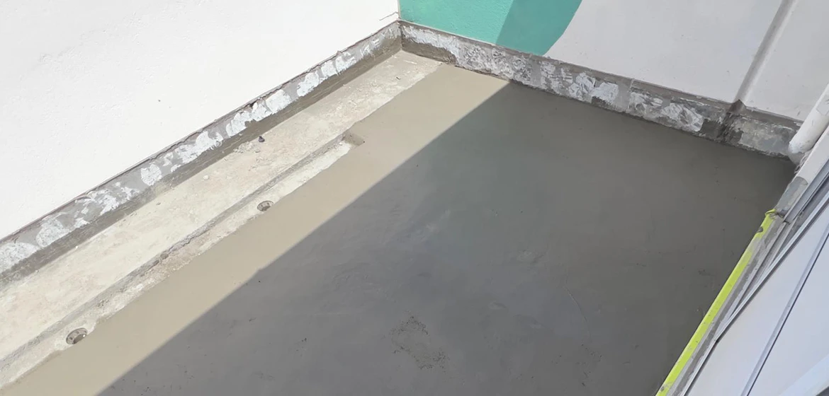 Weather exposure and waterproofing accuracy were also critical. We followed a strict waterproofing process using a two-stage membrane system, with careful detailing at all junctions. This ensured the balcony was fully sealed and protected for long-term use.
