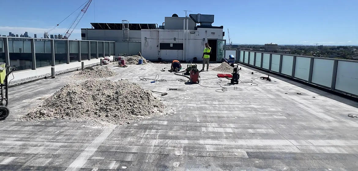 This rooftop renewal project was completed at the Trilogi Apartments in Prahran, Melbourne. The client required professional rooftop screeding with a modern paver installation 200m² area to create a durable, safe, and level surface. The goal was to improve the drainage, durability, and long-term usability of the rooftop area.